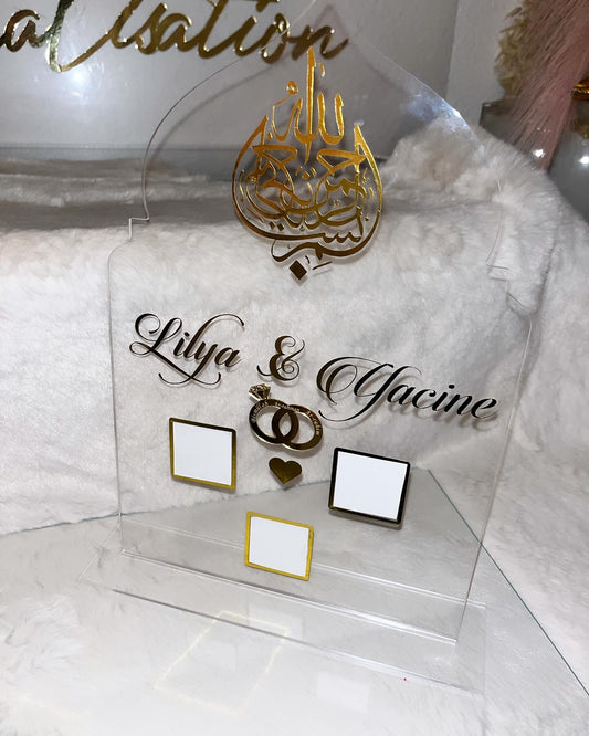 Billet d’Avion Luxe en Plexi Or Gravé – Cadeau Unique pour Omra ou Hajj