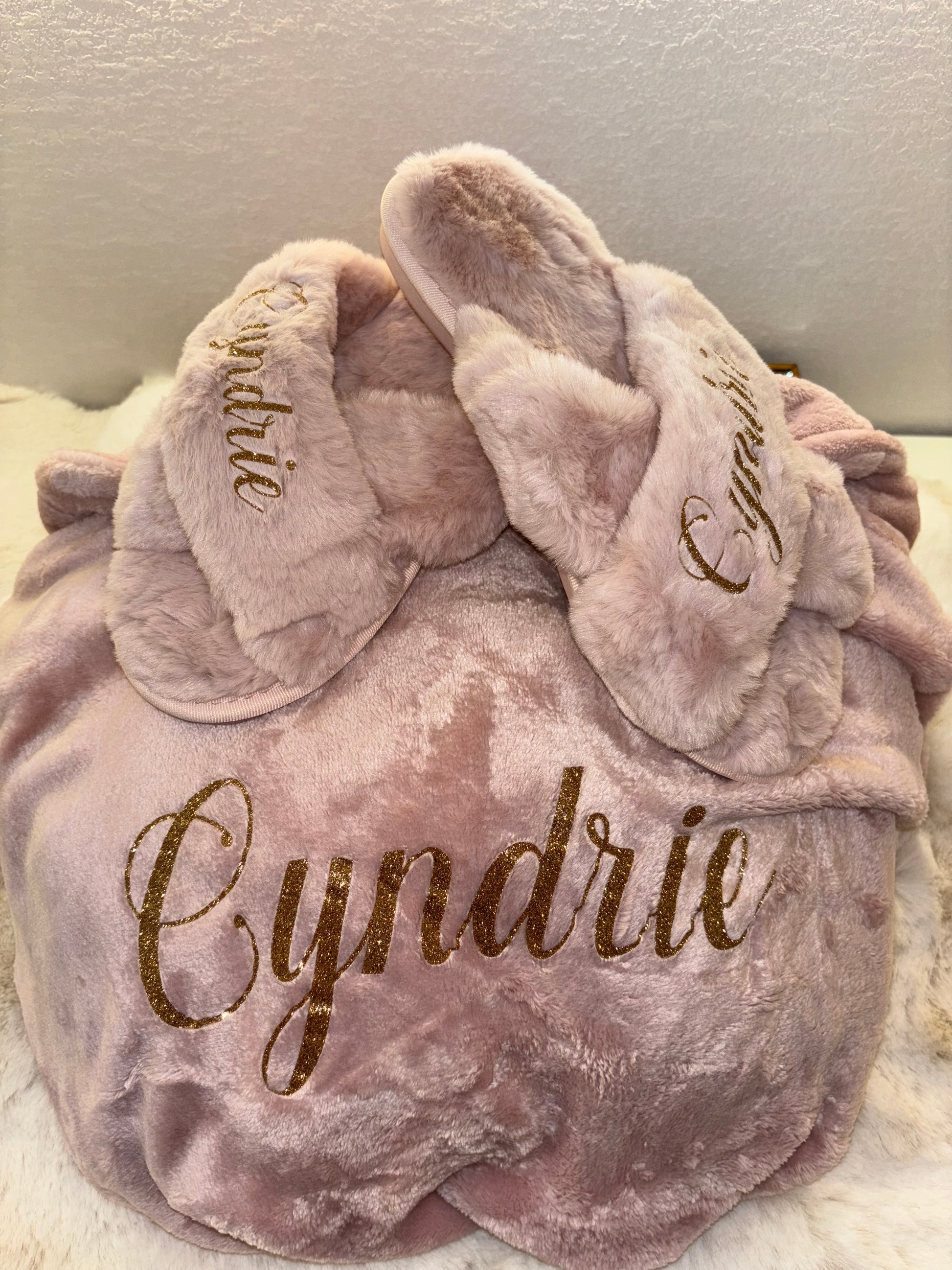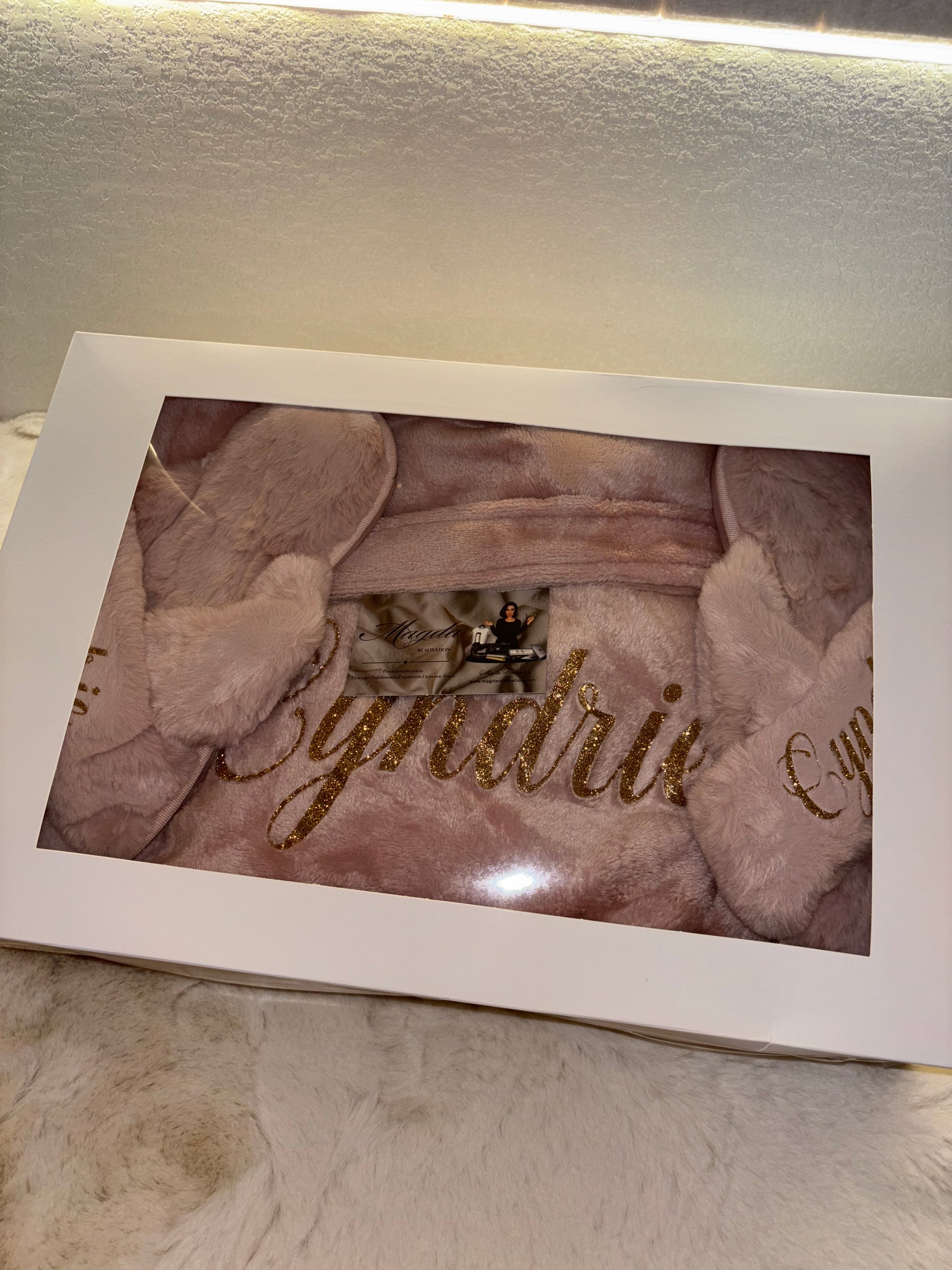 Box cocooning – Peignoir & chaussons polaires personnalisés avec boîte cadeau rose